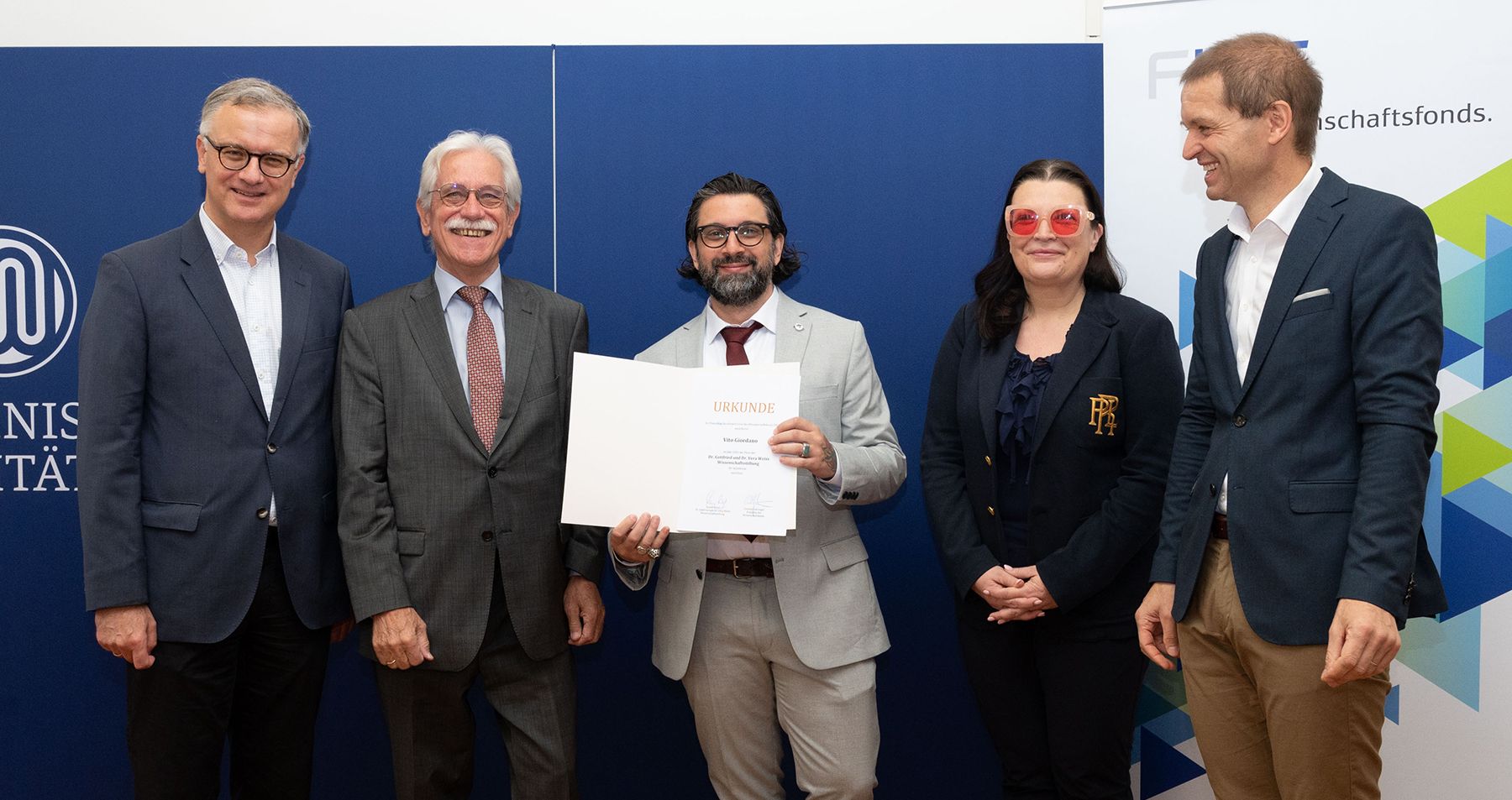 „Die Kooperation mit der Weiss-Stiftung und auch der alpha+ Stiftung des FWF ist für den Auf- und Ausbau einer philanthropischen Kultur im Bereich Wissenschaft und Forschung in Österreich enorm wichtig. Ich darf der Weiss-Wissenschaftsstiftung für ihr Vertrauen in den FWF danken und wünsche Vito Giordano viel Erfolg für sein Projekt“, so FWF-Präsident Christof Gattringer in seinen Gratulationsworten. „Klinische Forschung an Patientinnen und Patienten ist an sich schon eine Herausforderung. Wenn man es darüber hinaus mit Frühgeborenen zu tun hat, die sich noch nicht ausdrücken können, dann ist Erfahrung und Fachwissen in besonderem Maße gefragt. In der klinischen Praxis wird das Projekt einen ganz zentralen Beitrag leisten, wenn es darum geht, das Wohl von Säuglingen bei Eingriffen zu verbessern“, so Gattringer abschließend.